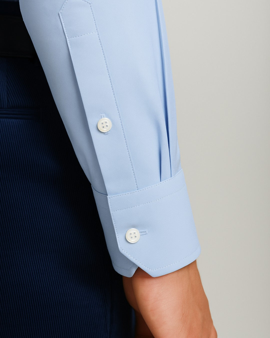 We make our cuffs with a fused interlining which helps keep them hard wearing and easy to iron.